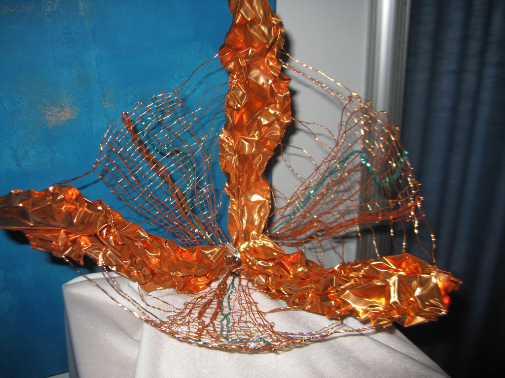 Ich bin sonst nicht so ein Fan der modernen Spitze und auch nicht immer dafür zu haben mit allen möglichen und unmöglichen Materialen zu klöppeln. Dieses Raumobjekt jedoch fand ich genial!