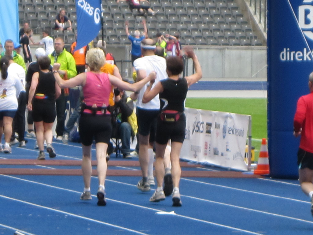 Beim Zieleinlauf im Olympiastaion hat uns mein Betreuerstab leider nur noch von hinten erwischt!