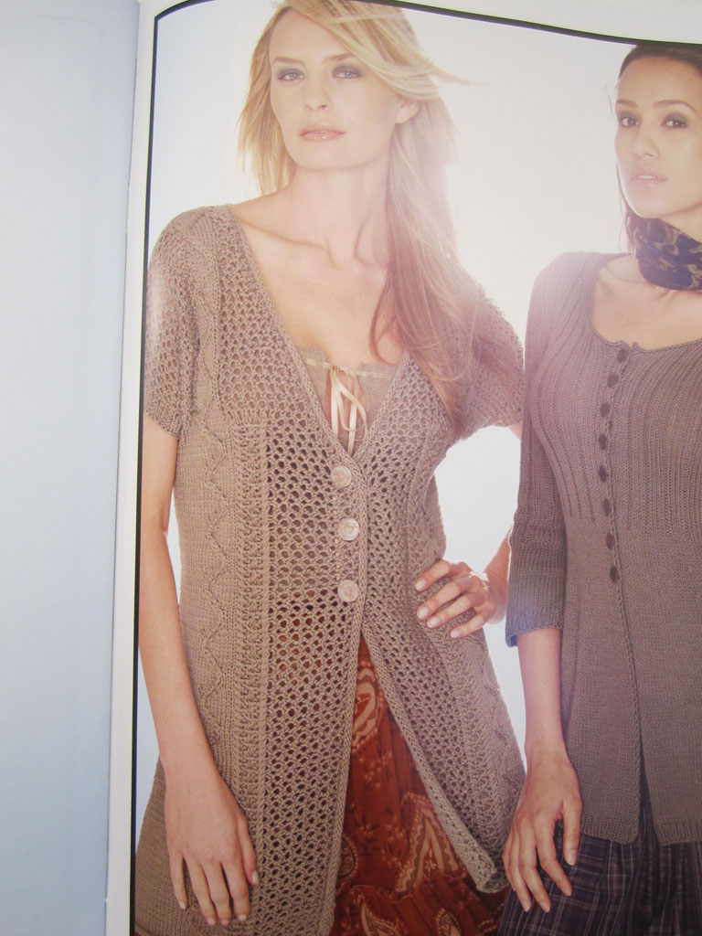 Beim Durchblättern habe ich aber nun noch eine Jacke gefunden. Farbe auch scheußlich (finde ich jedenfalls) aber das Muster ist so schön! Nun bin ich in der Zwickmühle welche ich zuerst stricken soll.