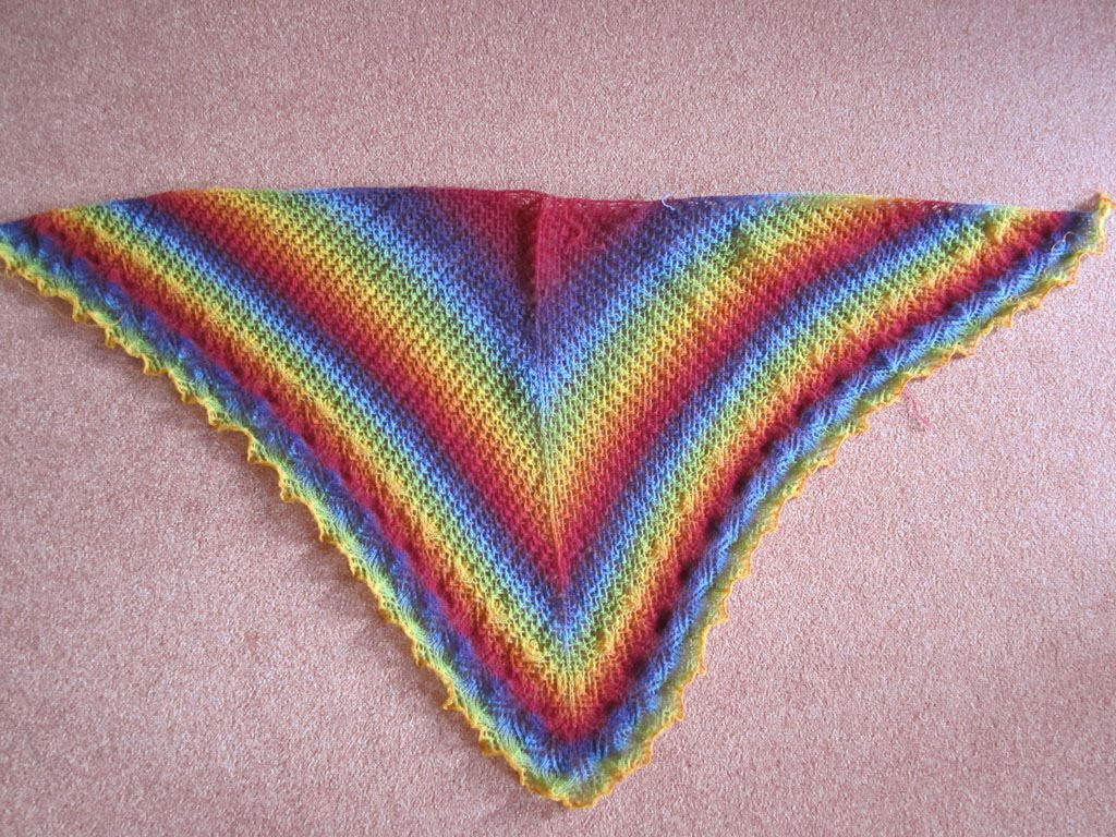 sehr schön das Tuch im Regenbogen……. ggg. Bin gespannt, wie es gespannt aussieht……lach (kleines Wortspiel)