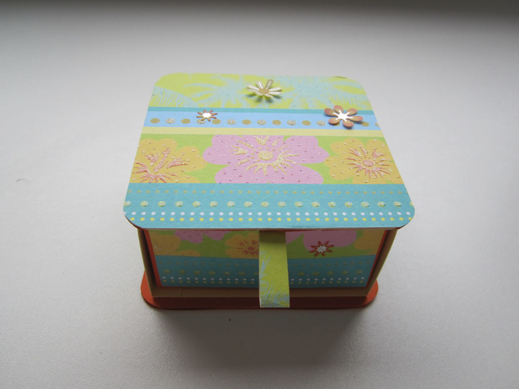 Eigentliches Tauschobjekt gegen Maschenmarkierer war diese von Sandra gebastelte Schachtel.