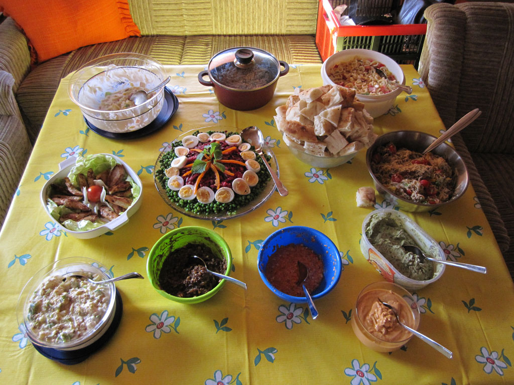Und das war unser Abendessen. Das Thema des diesjährigen Gartenklöppelns war „Kunterbunt“.