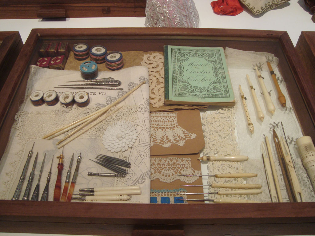 Sie hat neben vielen Spitzen auch diverses Zubehör zum Nähen, Sticken, Stricken usw. gesammelt. Das war total schön!