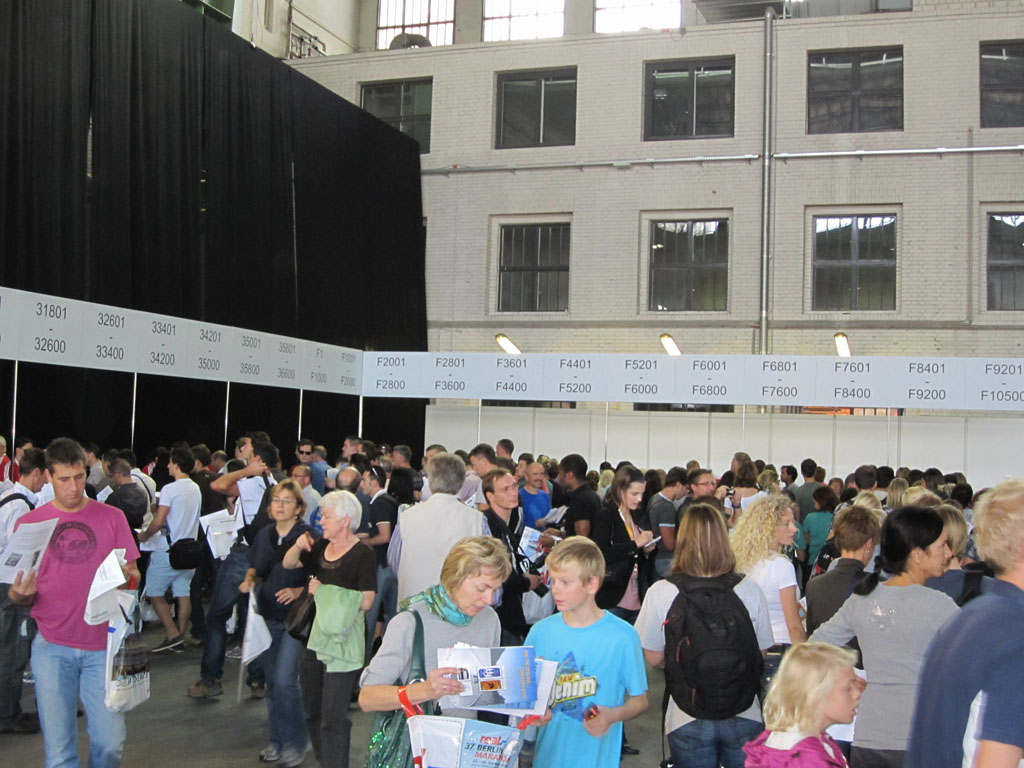 Großer Andrang herrscht bei der Startnummernausgabe.