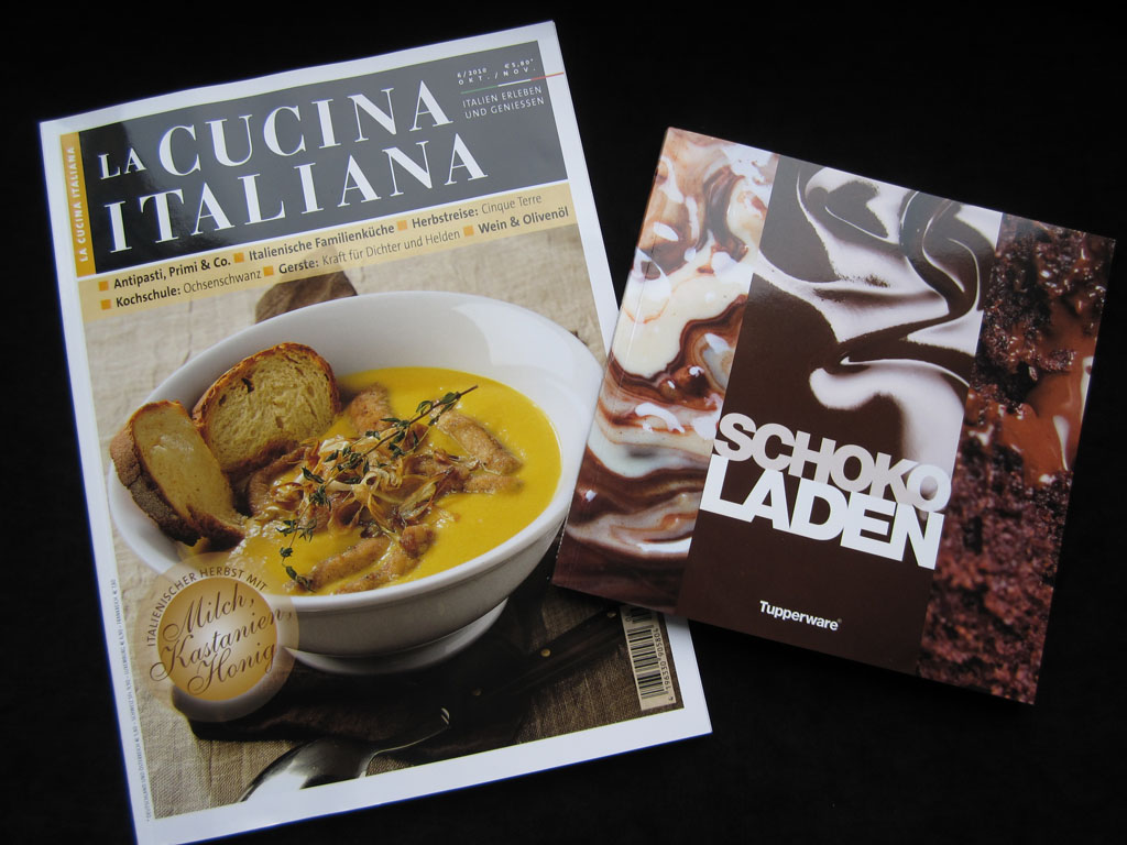 Die neue „La Cucina Italiana“ gefällt mir sehr gut und in dem Tupper-Schokoladenbuch gibt es auch so die eine oder andere Leckerei!