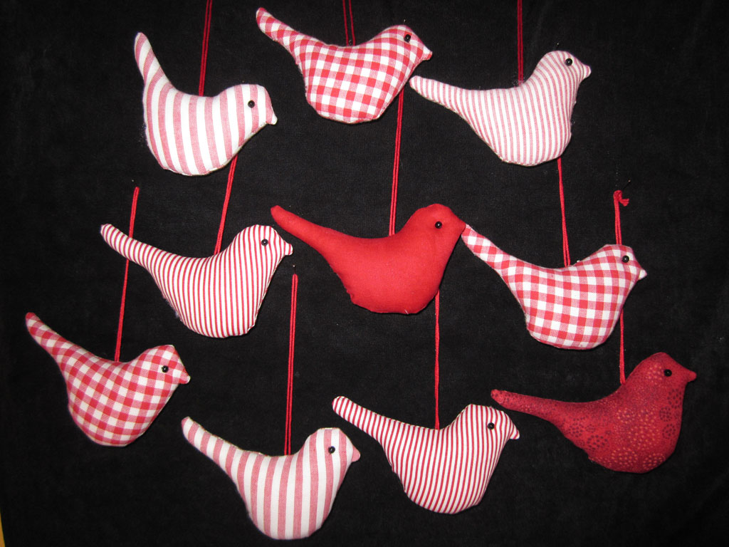 Nach meiner letzten Tilda-Herz-Aktion (die mit dem Elchband) habe ich gleich noch die Reste so weit wie möglich vernäht. So sind 10 neue Tilda-Vögelchen entstanden.