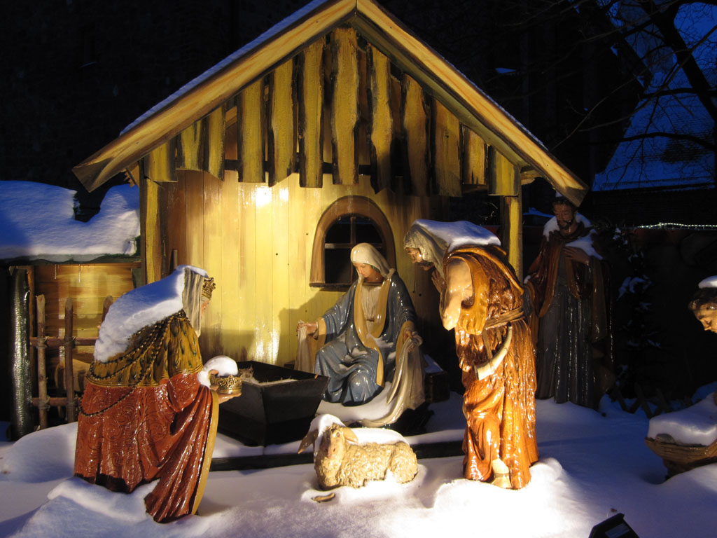 Hübsch finde ich auch diese aufgebaute Krippe. Ganz besonders nett ist es, wenn dort Kinder stehen und ihre Interpretation der Weihnachtsgeschichte preis geben!