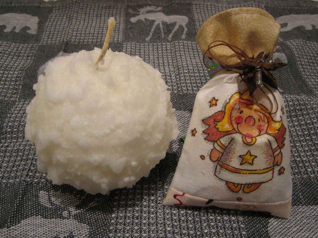 Ein Foto habe ich mir gerade beim Verkleinern zerschossen. Es gab noch Schokoladenstäbchen und dazu eine Engelkerze!