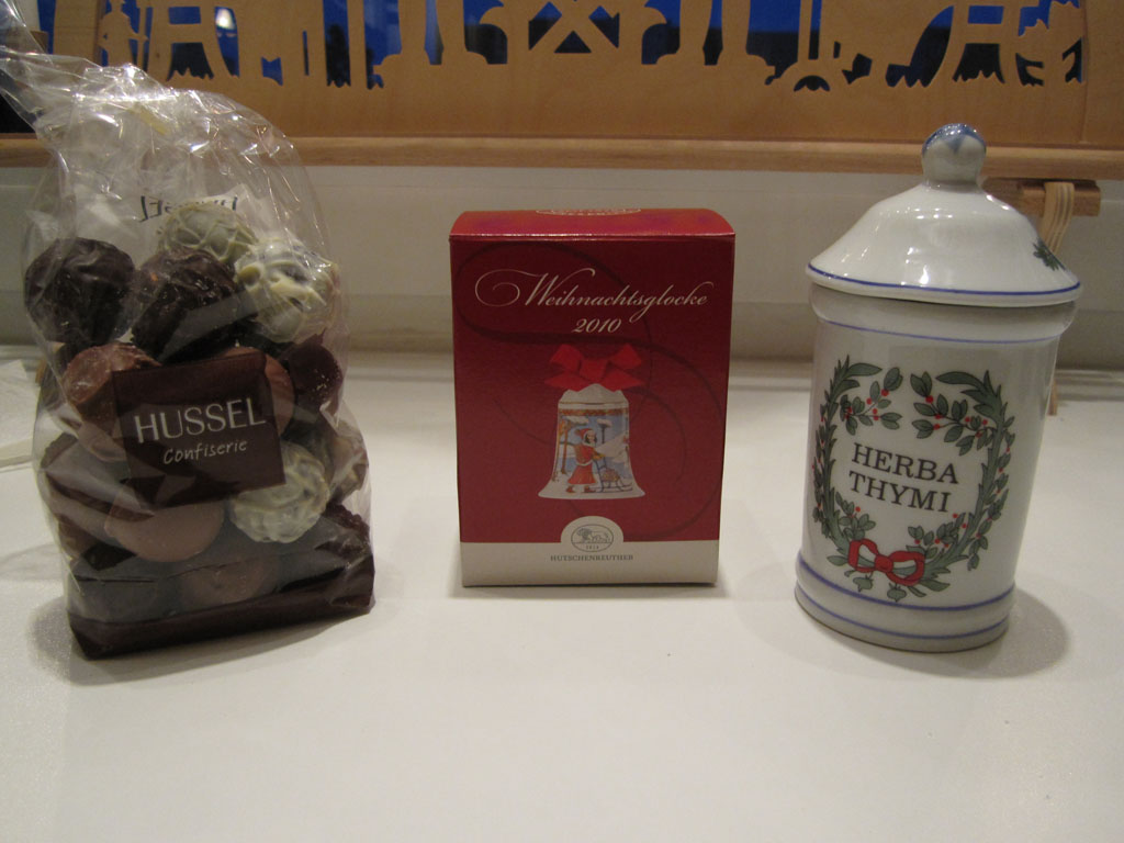 Pralinen, meine jährliche Hutschenreuther Weihnachtsglocke und eine hübsche Thymiandose samt Inhalt!