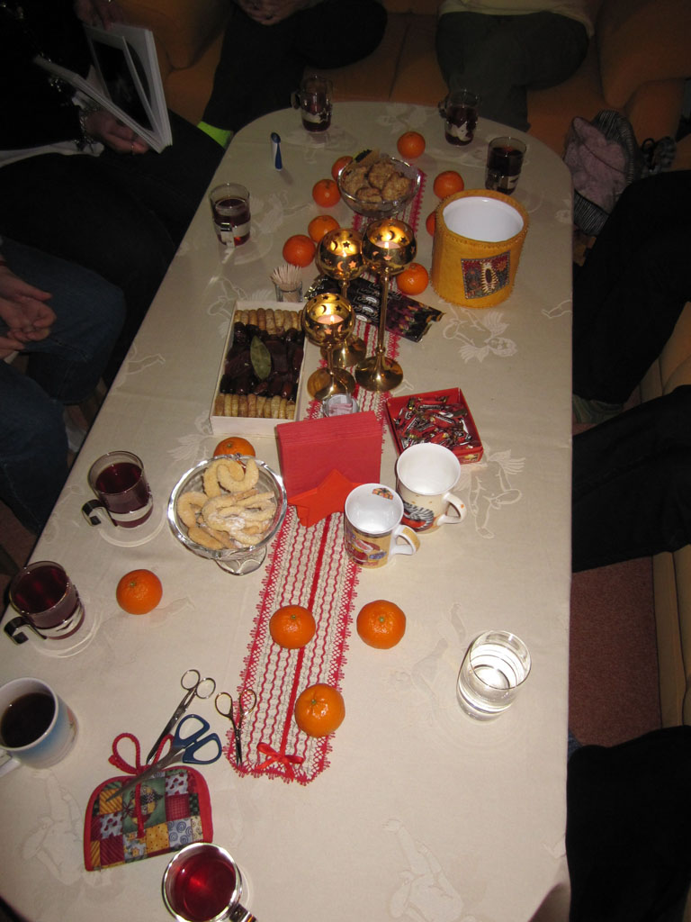 Stattdessen bringen meiner Weiber Plätzchen, Stuten, Mohnpielen und Mandarinen mit und ich koche Unmengen von Weihnachtstee!