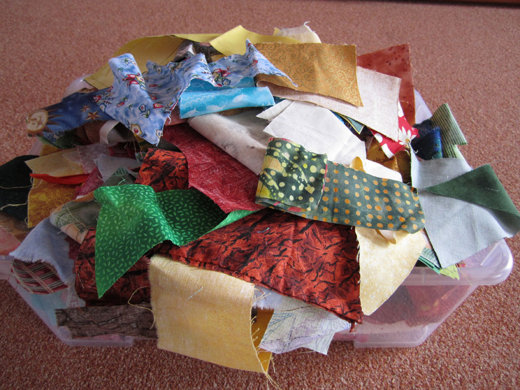 Den Resthaufen sieht irgendwie grau aus, aber die Quiltteile schon so lebendig und lebensfroh.