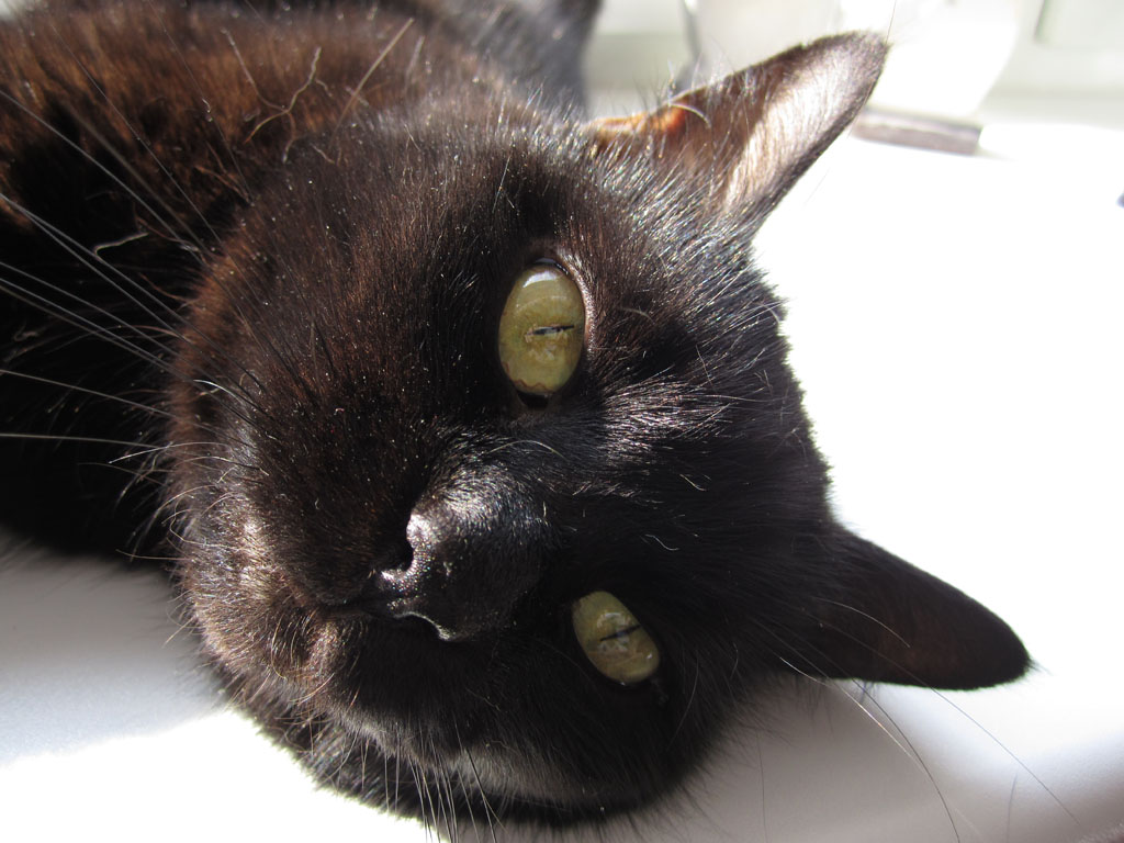Wie süüß! Nett von von Bonny, dass sie mal so schön in die Kamera schaut. Schwarze Katzen sind ja nicht so einfach zu fotografieren. Man sieht ihr an wie wohl sie sich auf der Fensterbank fühlt, toll!