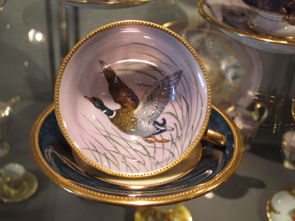 Mit diesem Porzellan sollen dann die Spitzen dekoriert werden. Das wird am Montag und Dienstag die Dekorateurin der Porzellanmanufaktur für uns machen.