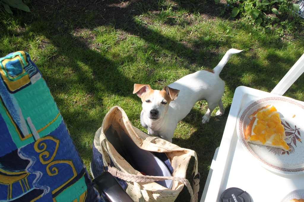 Ist ja klar, dass Tara mitkommen durfte! Natürlich musste erst einmal alles begutachtet werden, was in ihrem Garten so rumsteht.