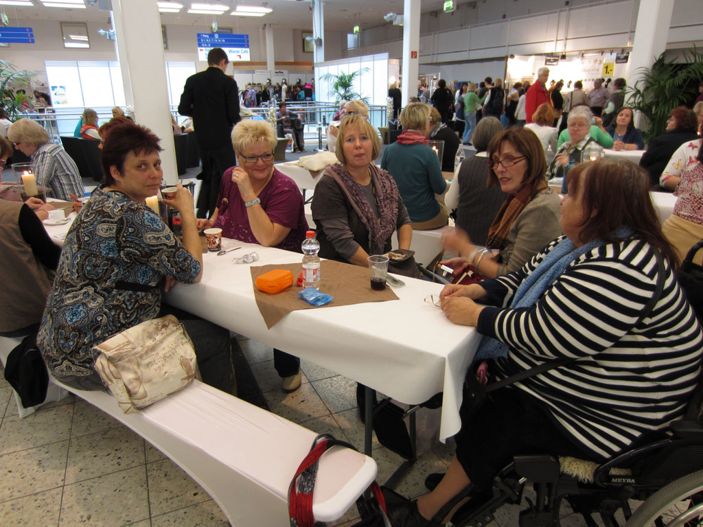 Dann seht ihr Martina, die etwas später zu uns gestoßen ist. Und dann kommen noch zwei meiner Gaby’s. Die neben Martina ist Frau Sockentante und ihr gegenüber sitzt Frau Sockenlehrling. Frau Sockentante hat mir zwei schöne KIssenhüllen für meine Kuschelkissenaktion mitgebracht. Bilder gibt es, wenn die gestopft sind. Auch liebe Gaby, nochmals herzlichen Dank für deine Unterstützung.