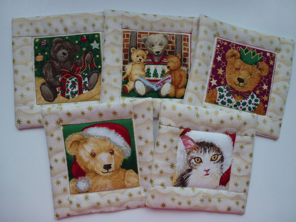 sehr schööööön, aber als Untersetzer viel zu Schade 😉 Ich würd sie als Wanddeko nehmen – hab auch das kleine Weihnachts Patchworkbild vom letzten Jahr von dir wieder aufgehängt.