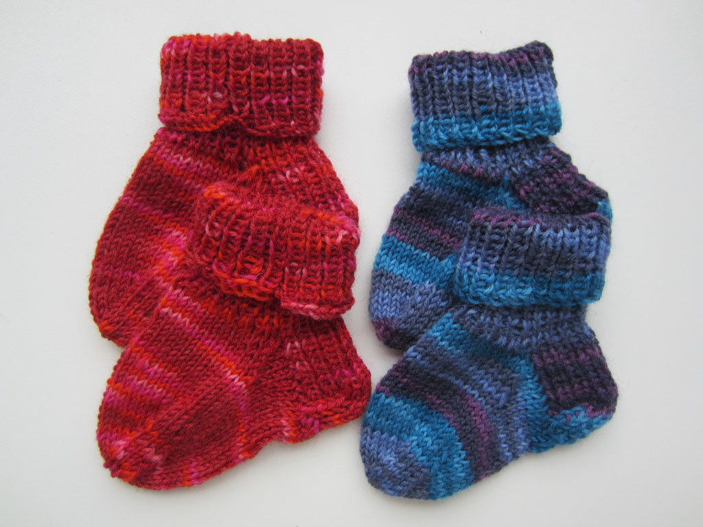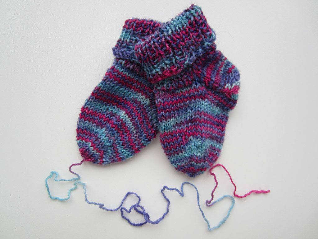 Entstanden ist ein Paar Babysöckchen in der Kindergröße 62/68.