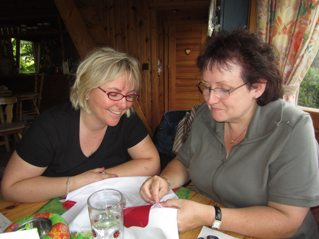 ich hatte so einige Sachen mit, bei denen noch die letzten Stiche angebracht werden mussten, wie z.B. Binding auf der Rückseite per hand annähen.