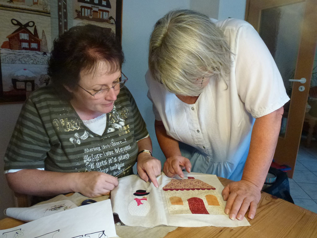 Die Meisterin der kleinen Applikationsstiche musste mit guten Ratschlägen zur Seite stehen.