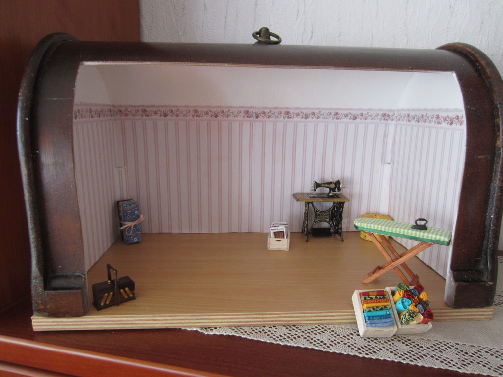 Mir scheint das ein alter Nähmaschinenkoffer zu sein……, echt klasse die Idee. Und dann die winzigen Teile……, süß.