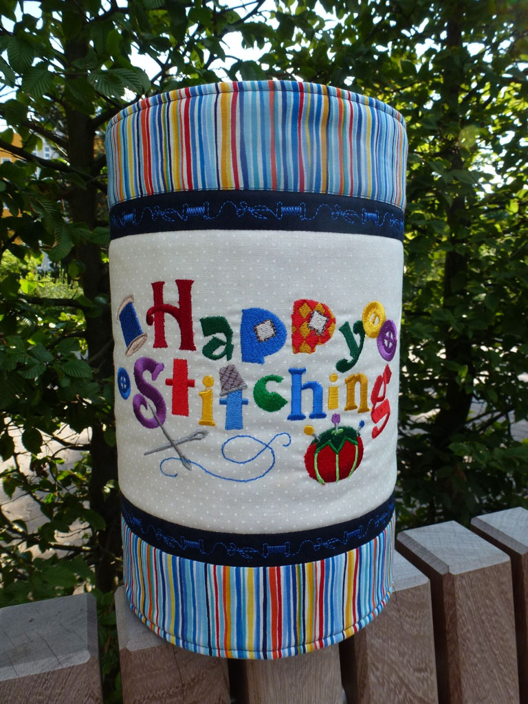 Die blau-kunterbunte Dose gefällt mir ja sowas von gut. Man gut, das ich keine Stickmaschine habe, dann würd ich nämlich nicht mehr zum Nähen kommen, sondern nur noch schöne bunte Sachen sticken ;-)))