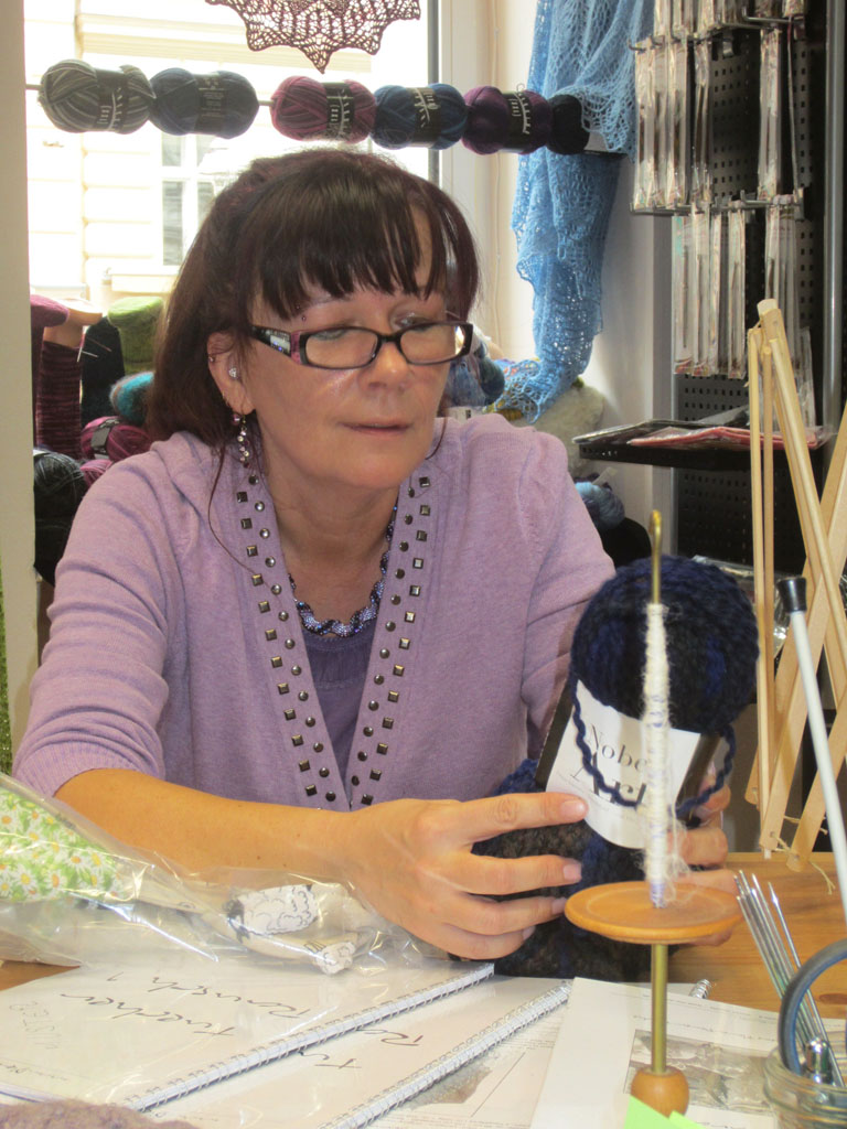 Birgit war auch da und wickelte netterweise die Wolle für mich!