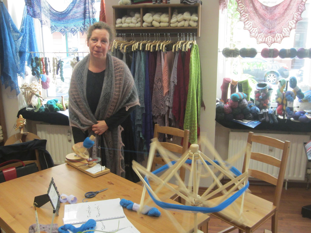 Birgit war auch da und wickelte netterweise die Wolle für mich!