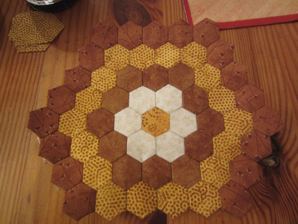 Bei den letzten Sticheltreffen habe ich an meinem “La Passion weitergenadelt. So habe nun auch ich endlich meine erste Runde geschafft! Wenn ich mich nicht verzählt habe, dann habe ich bis hierher 391 kleine Hexas aneinandergenäht.