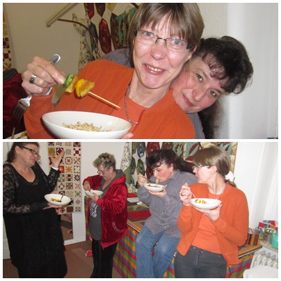 Marlies brachte in einem Topf sogar warme Nudeln mit Sprossen mit!