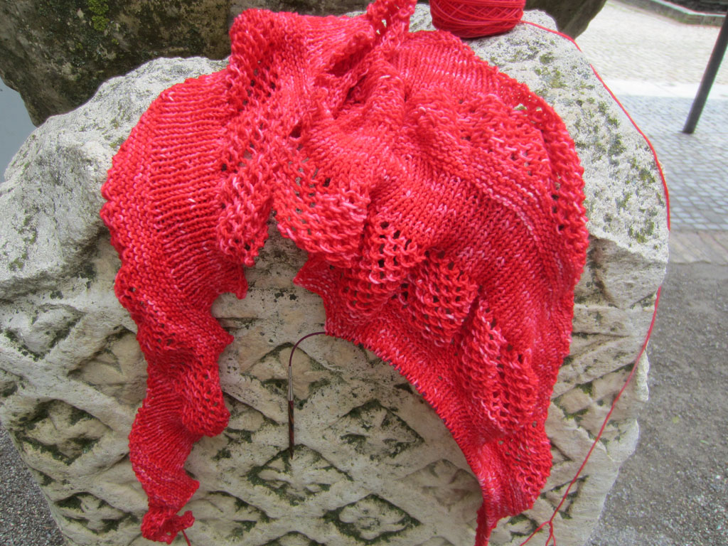 6. Das geht ja ratzfatz und das Tuch wird fertig! Was strickst Du auf der Heimfahrt? Sehr schön sieht es aus und die Wolle ist toll.