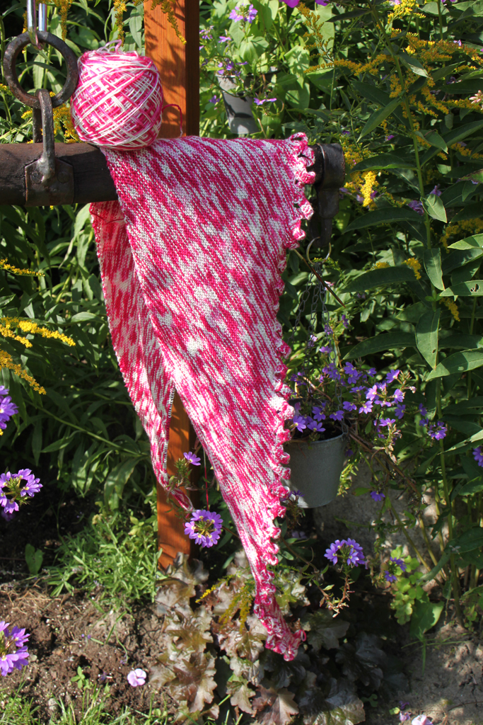 11. Wie Himbeeren mit Sahne schaut die Wolle aus! Sehr lecker 😉 Das Tuch ist sehr schön geworden und hat jetzt genau die richtige Größe für ein alltagstaugliches Tuch. LG Kuestensocke