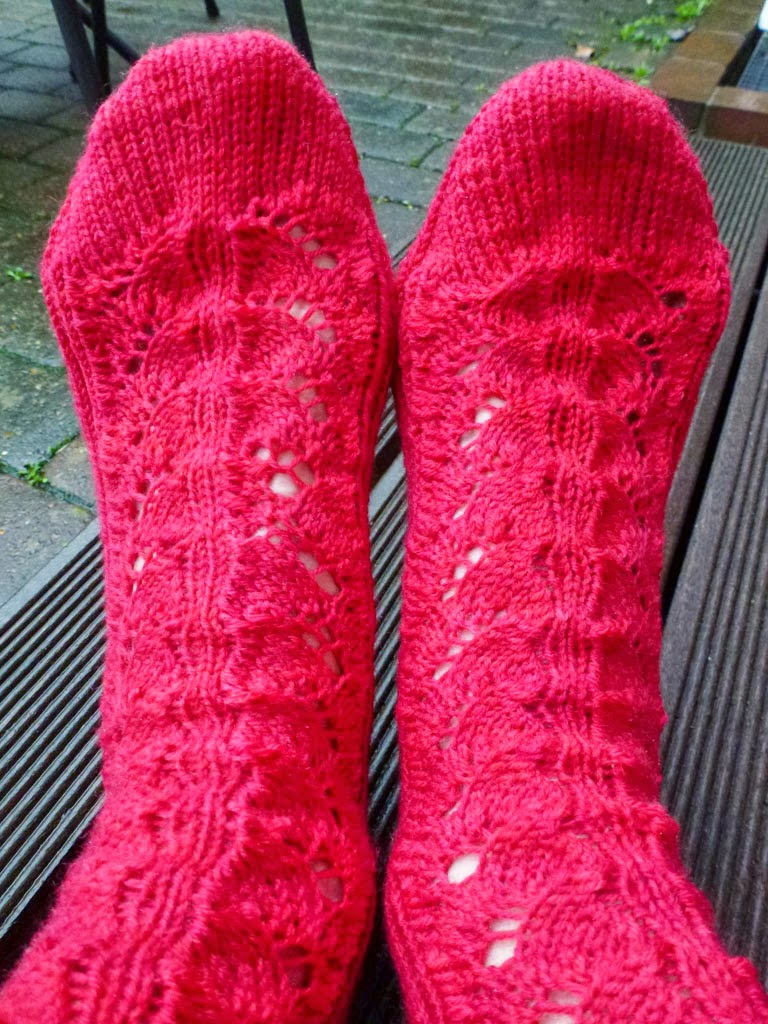 Deine Socken sehen herrlich aus. Sowohl der Bratapfel als auch das Kirschrot sind der Hit.