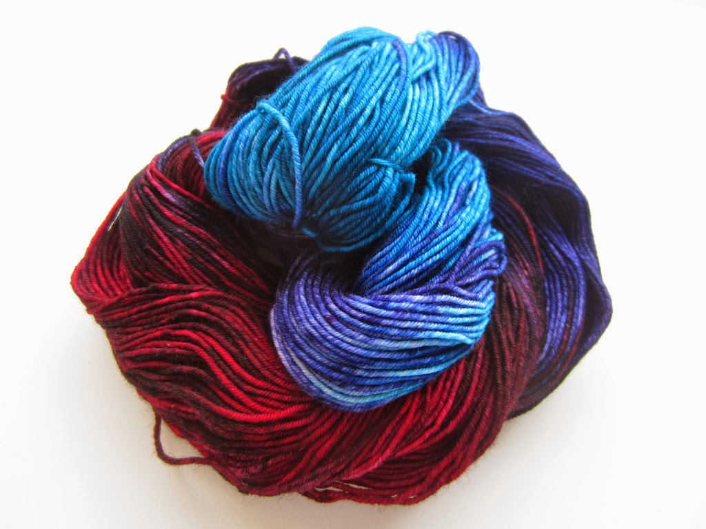 Das Tuch sieht absolut spannend aus und deine Wolle ist ein Knaller, gerade das blau-rote. Super! Und jetzt rasch an die Nadeln, ich bin gespannt auf dein Tuch.