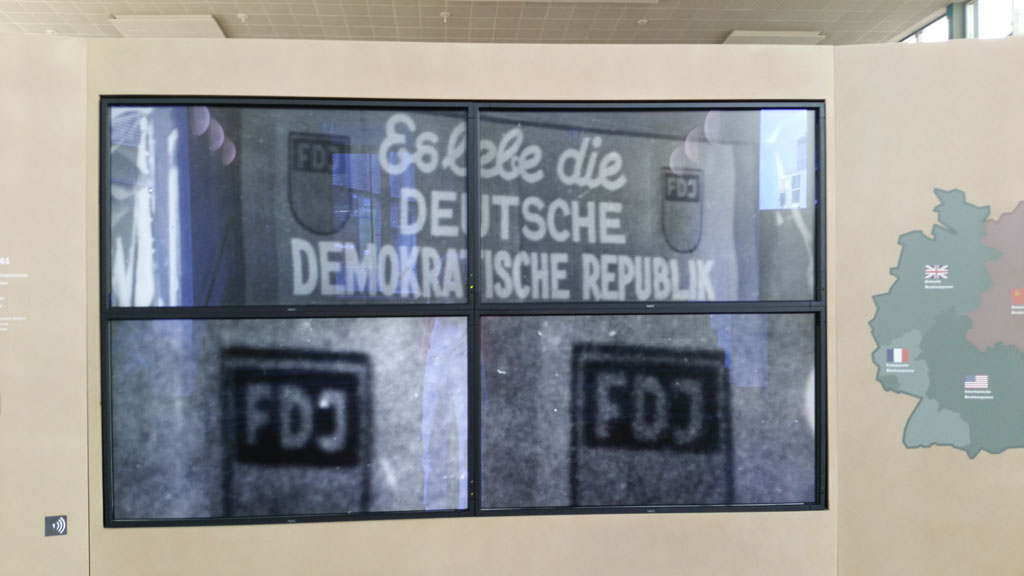 Gleich am Eingang eine Diashow mit Bildern des Mauerbaus.