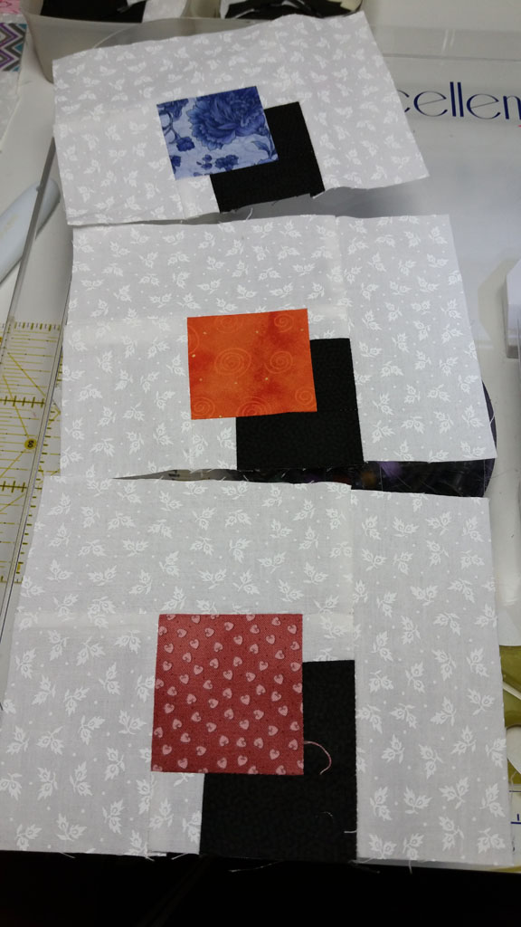 Die hatte ich mir auch schon vorbereitet. Bei den Probeblöcken habe ich gemessen und mir die entsprechenden Abschnitte zurecht geschnitten. Ich kann so besser Kette nähen!
