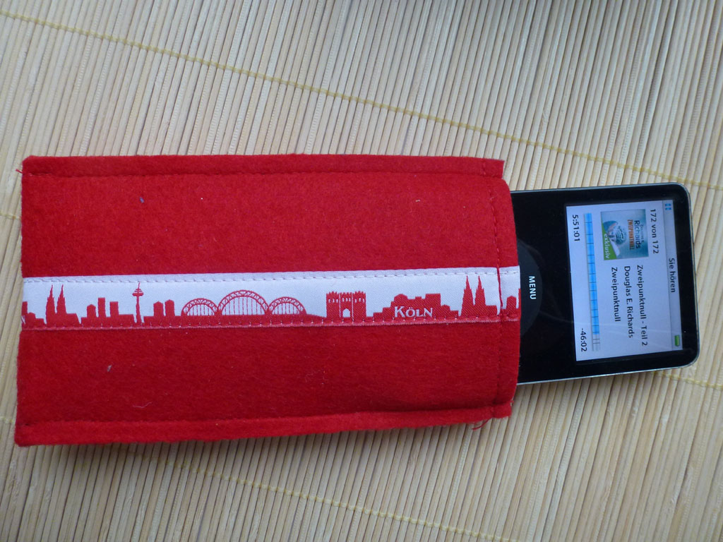 Leider passt mein Handy nicht in die Tasche, aber dafür freut sich mein iPod über die Behausung.