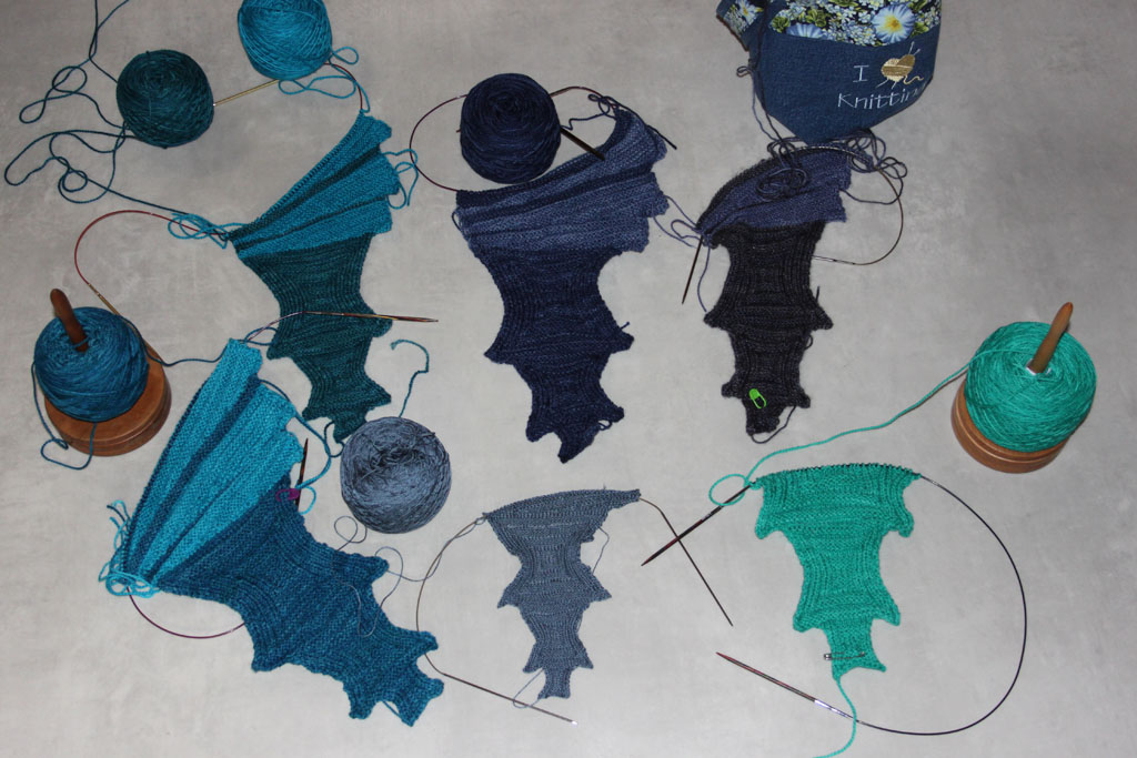 Toller Schal und schickes Tuch! Da hast du dir schöne Farben ausgesucht, blau steht dir auch ganz hervorragend! Der Anfang sieht schon mal sehr schön aus! Na dann – Fröhliches Stricken!
