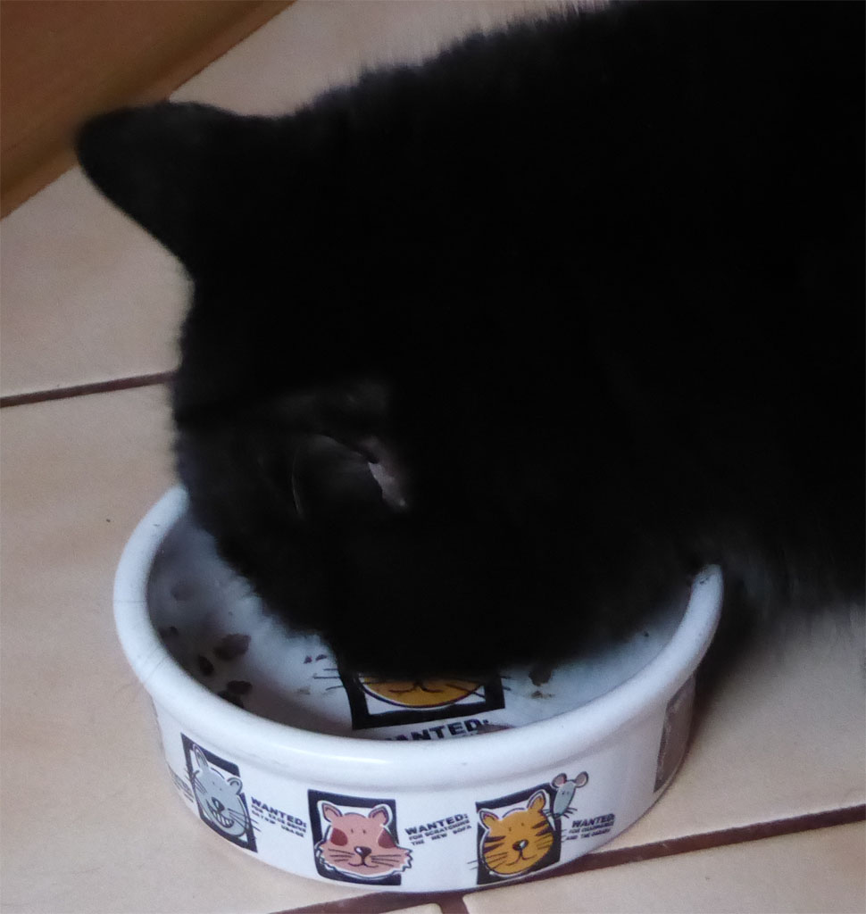 Meine Bonny war heute schon sehr früh der Meinung ihr Frühstück haben zu wollen, aber Frauchen hatte da noch so gar keine Lust zum Aufstehen. Also musste sie etwas warten und dann hat sie sich wie eine Verhungerte auf ihr Fressi gestürzt und ratz-fatz alles leergefressen. Das macht sie nur ganz selten. Aber zur Zeit hat sie einen gesegneten Appetit und trotzdem ist sie noch immer federleicht!
