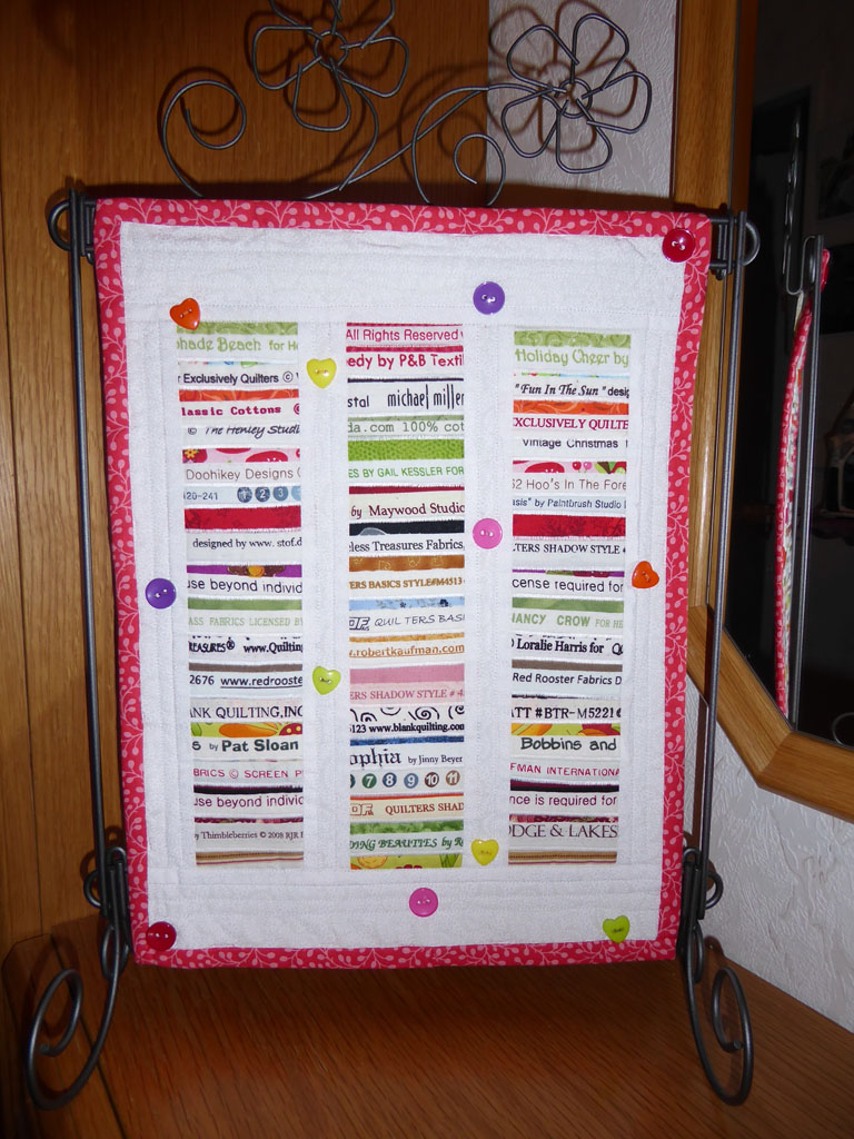 26. Klasse Idee, die Webkanten so zu verarbeiten. Und die Knöpfe als liebevolle Details gefallen mir auch sehr gut. Ein wunderbarer kleiner fröhlicher Quilt, der auch bestens in deinen Ständer paßt.