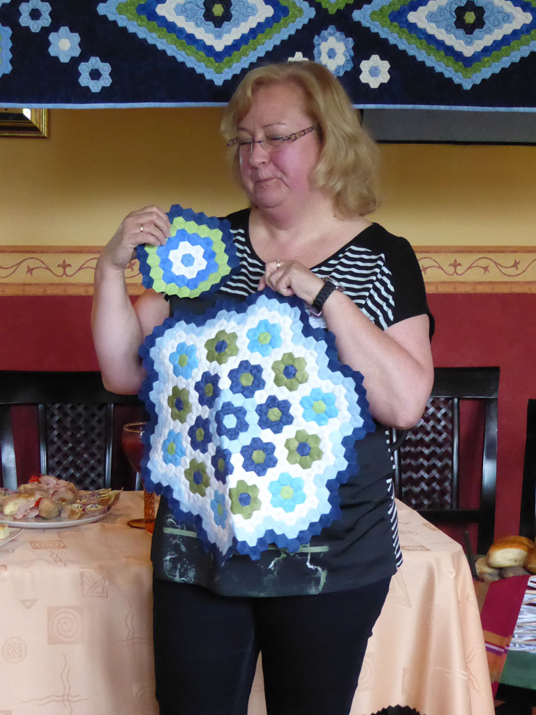 vielen Dank für den schönen und bidgewaltigen Bericht. die quilts werden alle wunderschön und die darin steckende Arbeit ist überhaupt nicht zu ermessen, das sind ja tausende kleine Hexis die ihr alle mit der Hand näht – da stockt mir echt der Atem. LG Kuestensocke