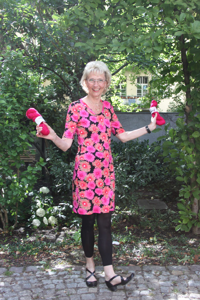 ich finde es gar nicht knallig, sondern schön. Die Farbe ist toll, sowohl bei Wolle als auch bei dem Kleid. Und das Kleid steht Dir ausgesprochen gut.