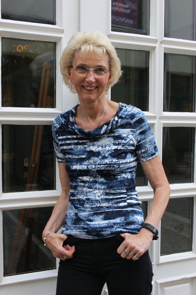 5. Den Jersey vom Stoffmarkt meine ich, gleich erkannt zu haben;-)…ein tolles Shirt, ist daraus geworden…mit einem schönen Raffinesse-Halsausschntt !