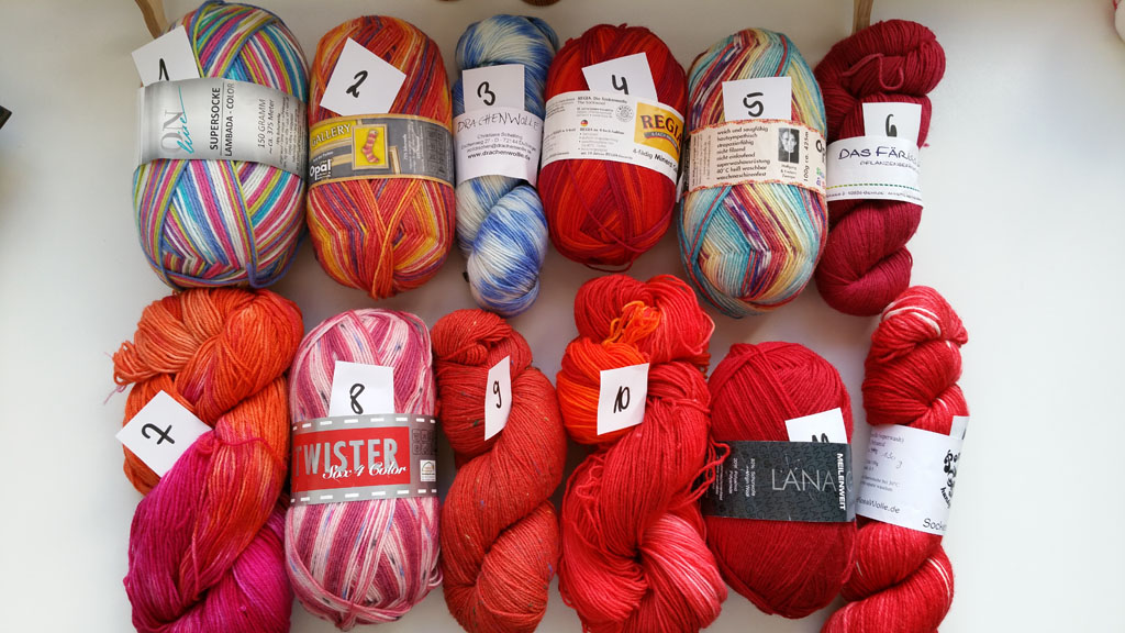 14. Was für tolle Wollsorten. Genau meine Farben. Fleißig weiterstricken. Die Socken sind der Hammer.