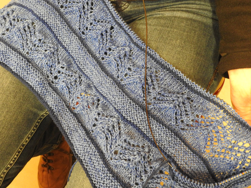 | Salome strickt eine Stola mit einem schönen Loch-Rombenmuster |