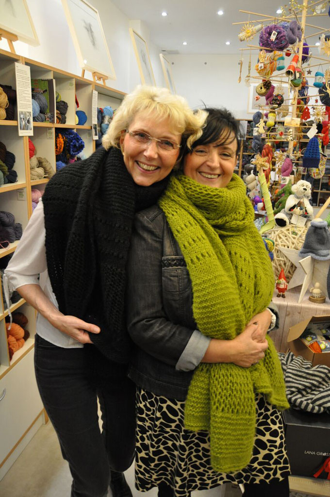 Die hätten Euch als Models für die Stola nehmen sollen. Ich finde sie sowohl in schwarz als auch in dem kiwigrün (apfelgrün?) super! Die Farbe der grünen Stola kommt auf Euren Fotos viel schöner heraus als im Anleitungsheft.