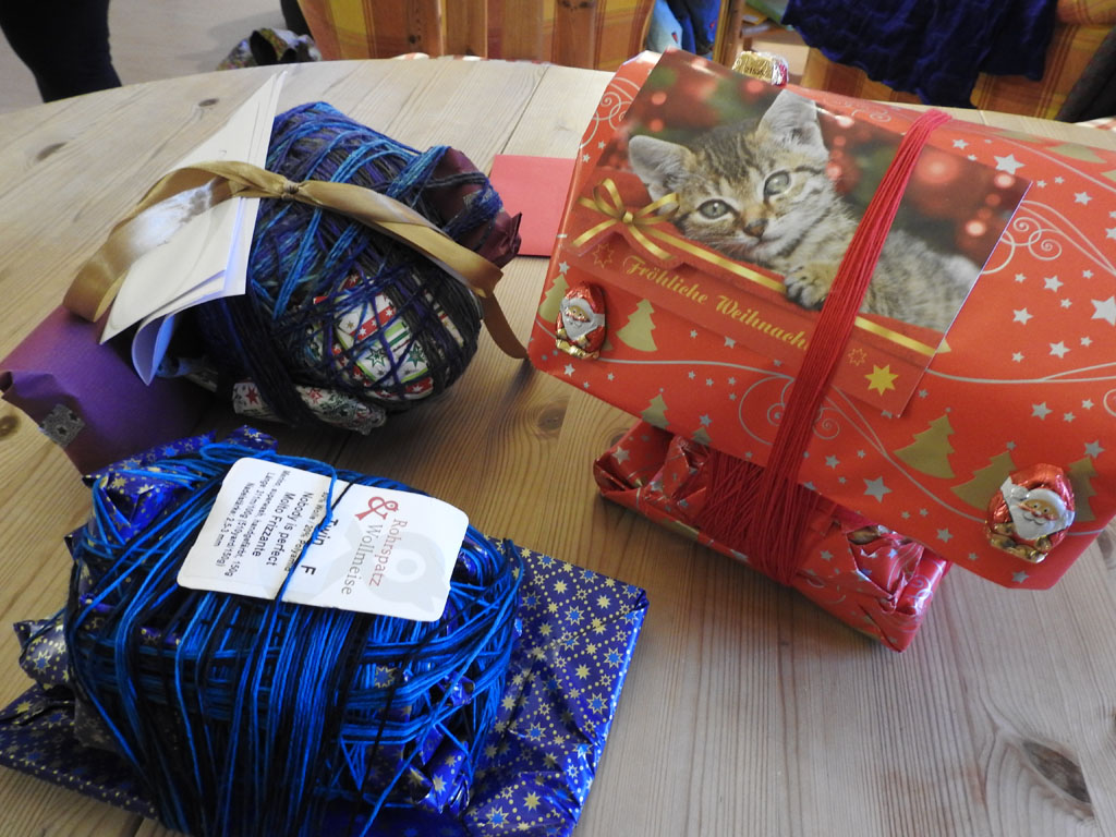 Und so haben wir am zweiten Feiertag am Abend unsere Wichtelknäule überreicht.
