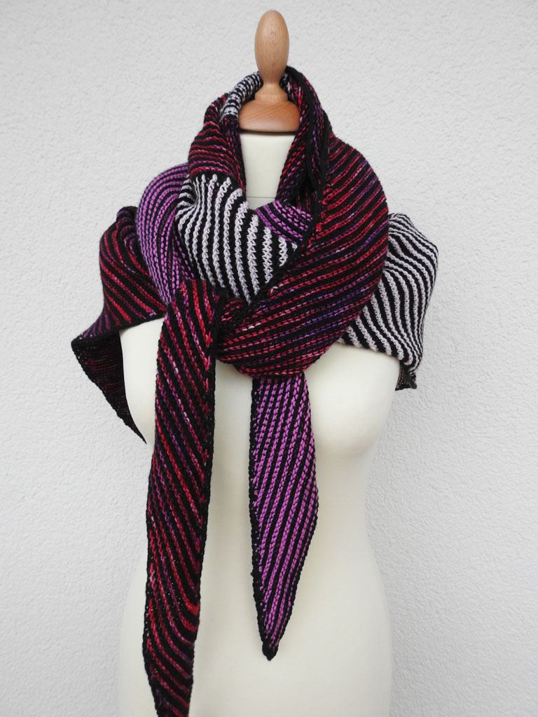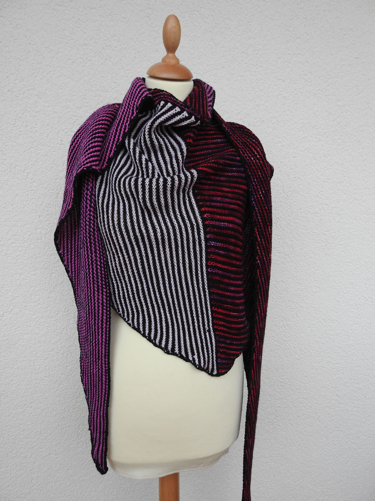 6. Du bist eine echte Strickkünstlerin. Wunderschön, du hast die Farben so gut gewählt und vor allem "in alle Richtungen" verstrickt – diese verschiedenen Streifenrichtungen haben eine fantastische Wirkung.