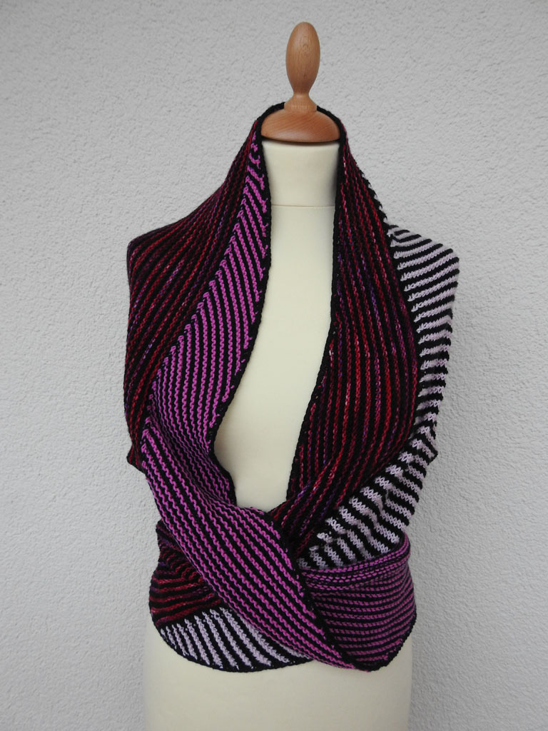 6. Du bist eine echte Strickkünstlerin. Wunderschön, du hast die Farben so gut gewählt und vor allem "in alle Richtungen" verstrickt – diese verschiedenen Streifenrichtungen haben eine fantastische Wirkung.