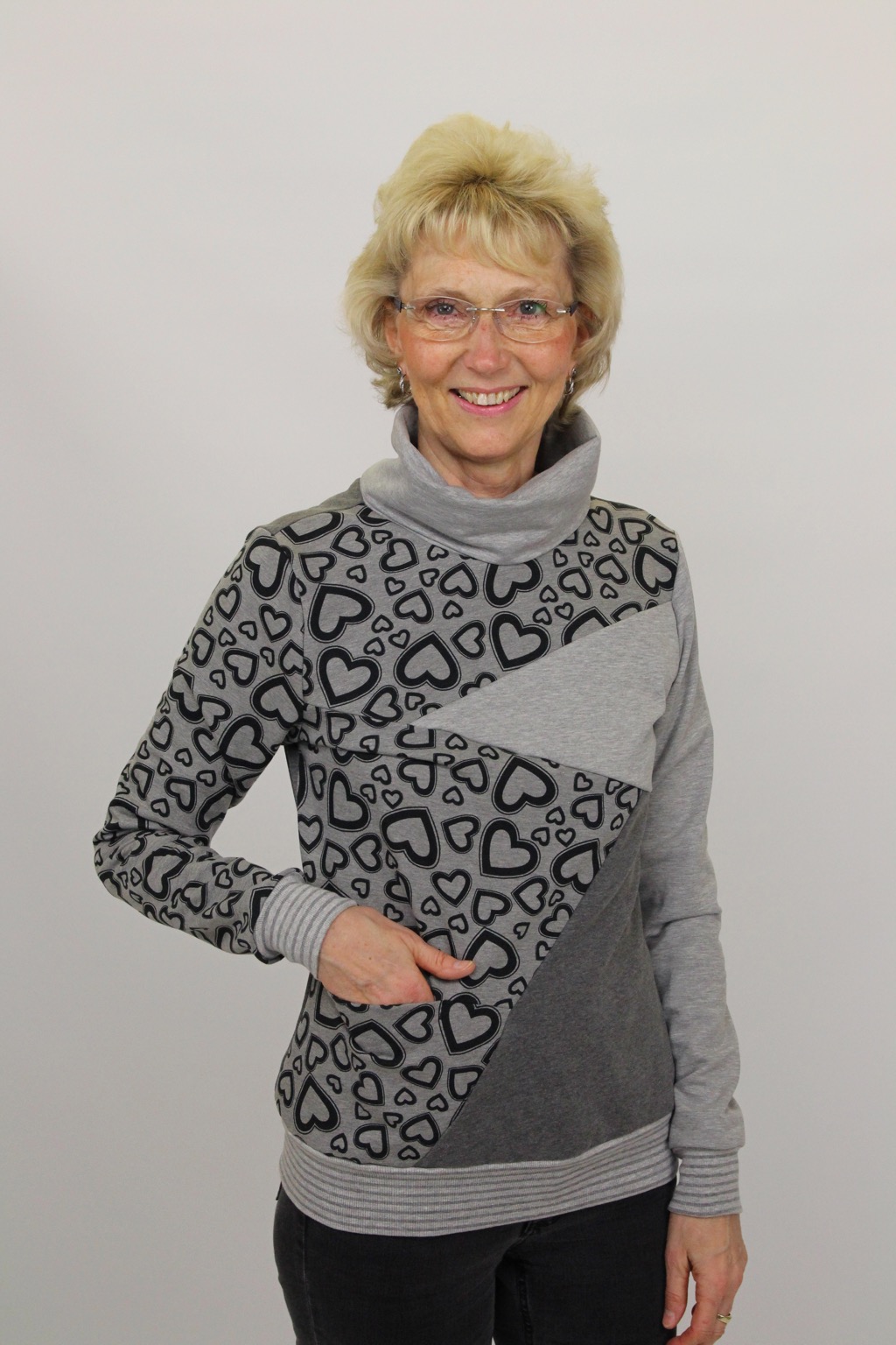 Ich wollte unbedingt den Rest meines Herzenstoffs vernähen. Leider hatte ich von der dazu passenden Qualität nur noch ein helles und dunkles grau zu Hause.