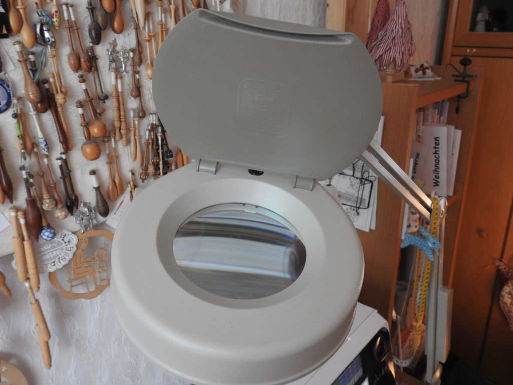 genau so eine Lupenlampe habe ich auch am Nähtisch. Die hat mir schon manches Mal bei vergessener Brille oder beim Naht auftrennen sehr geholfen!